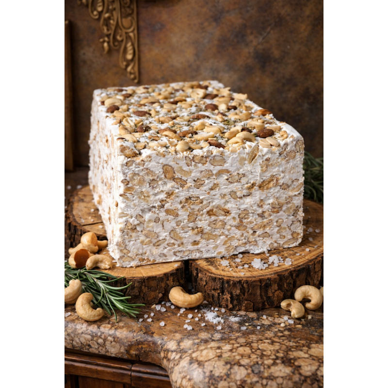 Nougat aux amandes, noix de cajou, sel et romarin.